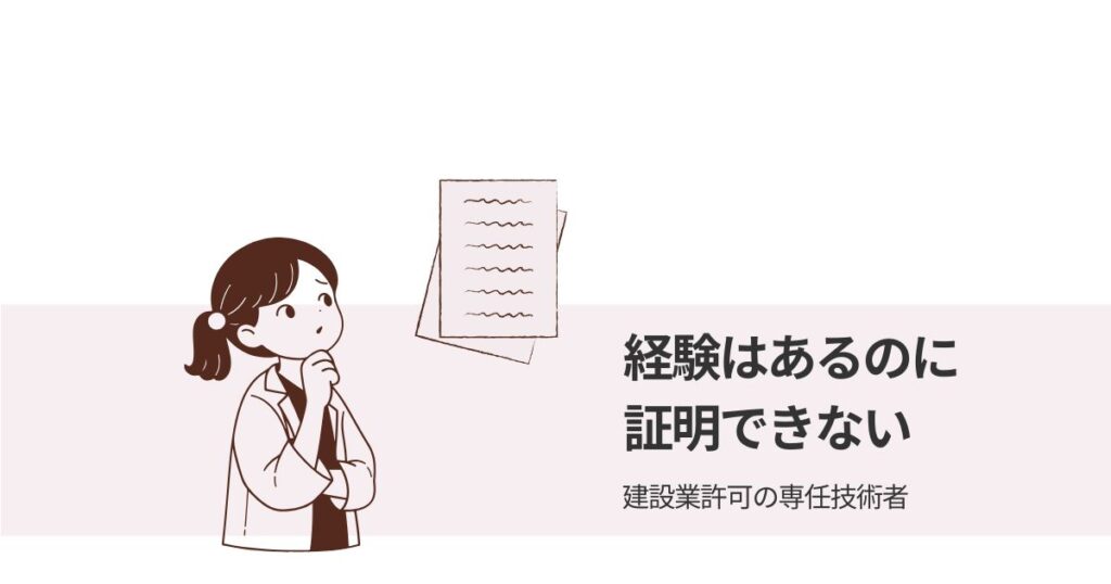 専任技術者の実務経験を証明する際、「経験はあるのに書類がそろわない」という問題は少なくありません。 条件を満たしていないのではなく、証明できないことが原因で手続きが進まないケースが多く見られます。 昔の工事の資料が残っていない 10年以上前の...