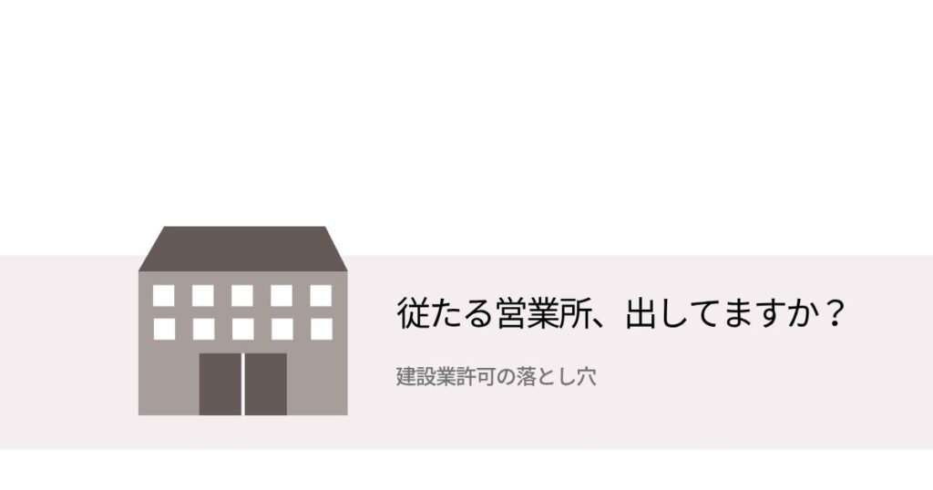 会社が成長して支店や営業所を増やすとき、「許可の届出って必要なの?」と迷う方はとても多いです。 「出張所だから関係ない」「倉庫として使ってるだけ」と思っていたら、実は届出義務があった……というケースは珍しくありません。 この記事では、従たる...