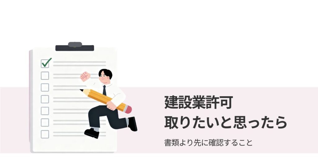 建設業許可は、書類を作れば取れるものではありません。条件を満たしていなければ、準備を進めても申請できません。 そのため、まずは「今の状態で取得できる可能性があるか」を確認することが重要になります。 ⒈経営管理責任者になれる人はいるか(目安:...
