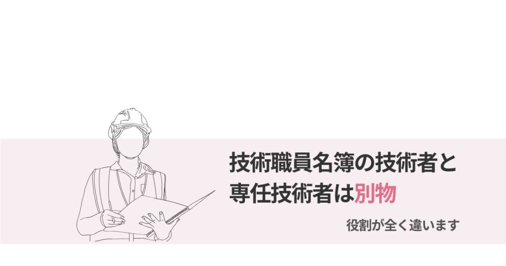 建設会社の事務をしていると、「技術者」という言葉が何度も出てきます。 専任技術者、主任技術者、監理技術者、技術職員名簿。どれも似た名前ですが、制度上はまったく別のものです。 よくある勘違いが、「専任技術者がそのまま技術者名簿に載る」という... -
