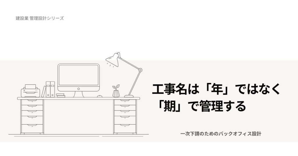 ― 8月決算会社が期番号を使う理由 ― 工事番号は、単なる連番。そう考えていませんか。 実際、多くの会社では 西暦 年度 単純な連番 で管理しています。 しかし、決算月が途中にある会社では、この方法があとから混乱を生みます。 工事番号は識別のためだけ... -